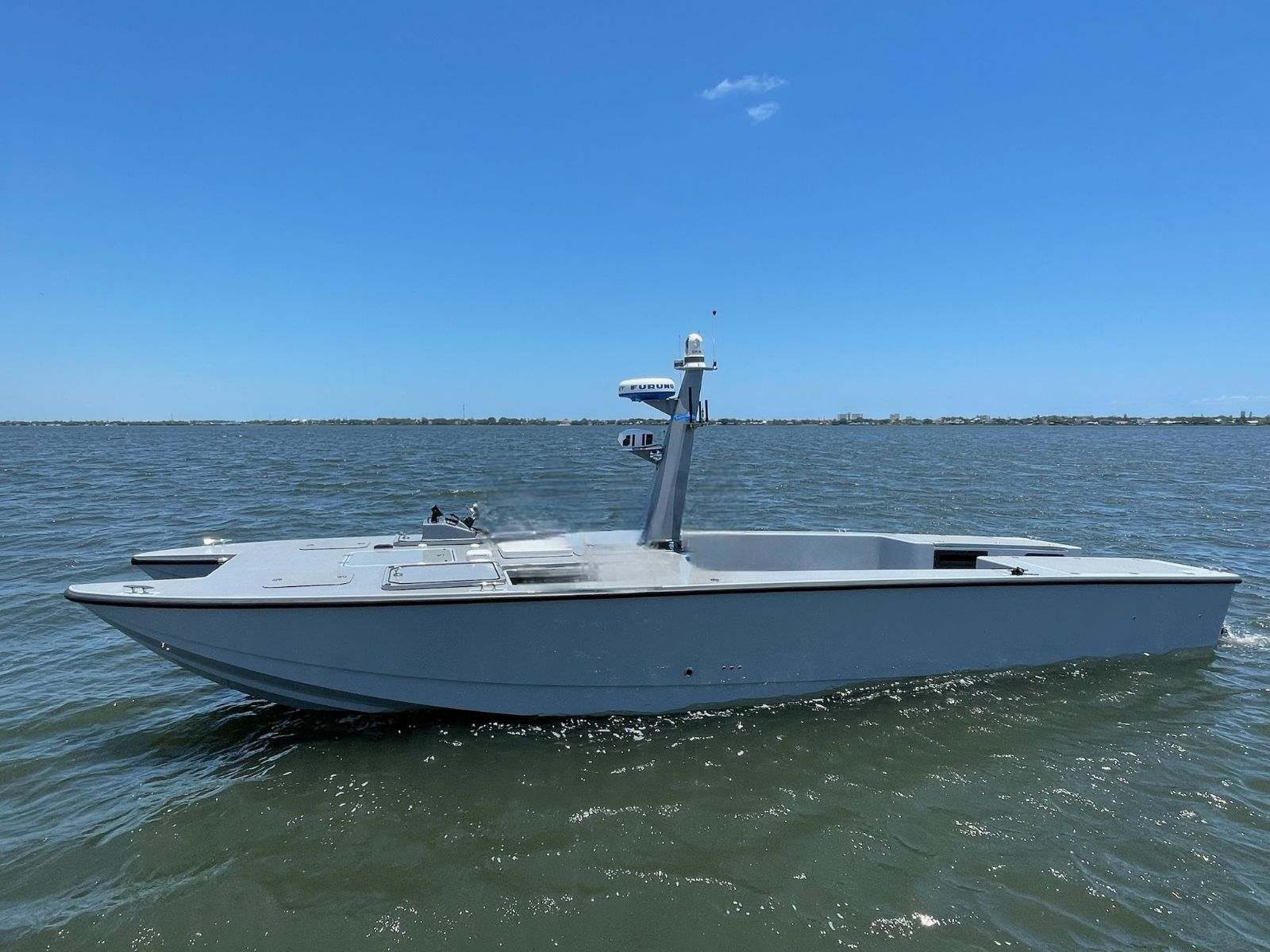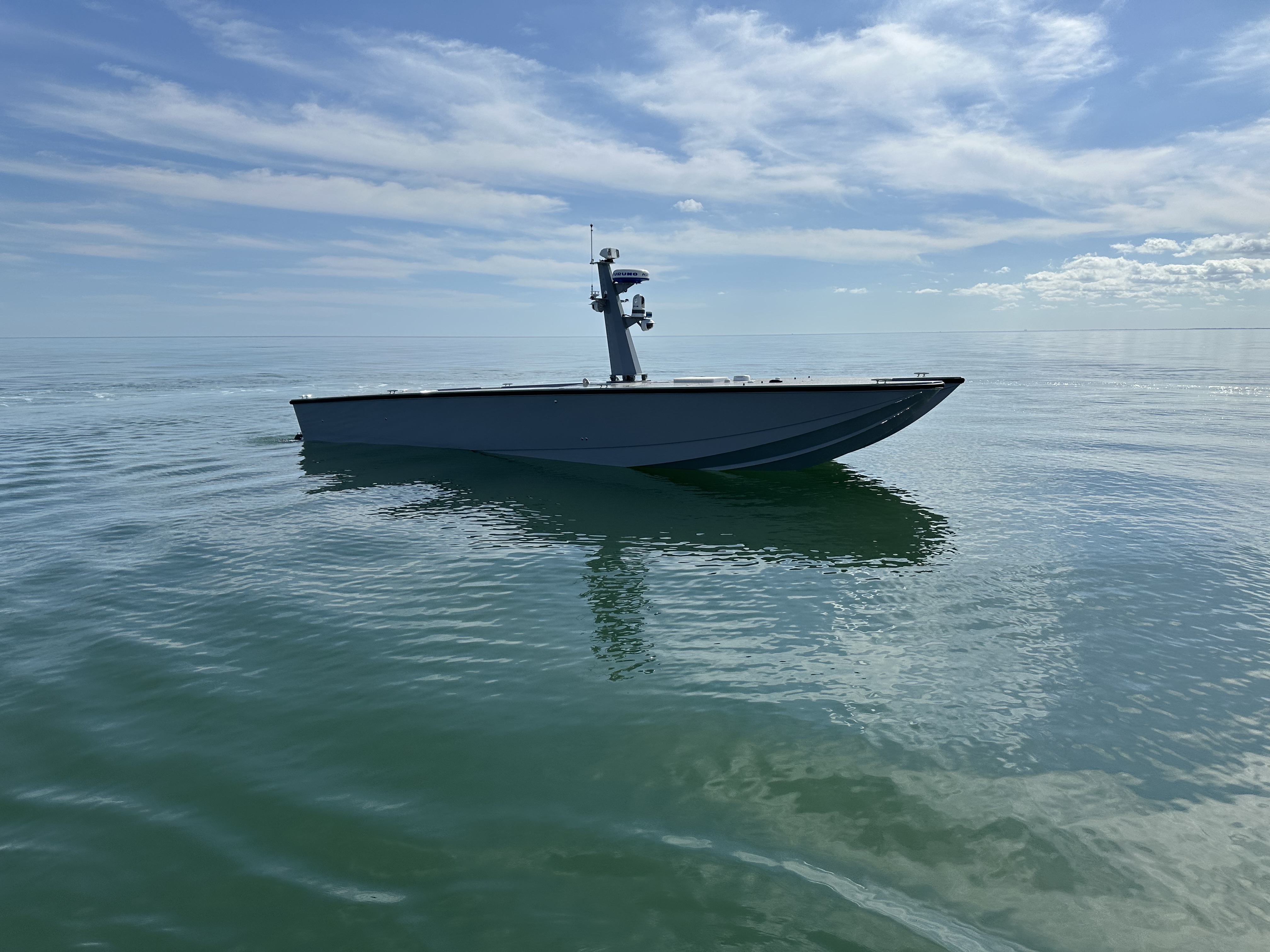 With a length of 38 feet (11.1 m) and based on a high-performance dual sponson platform that has multiple world records for manned speed and stability, it’s a medium USV system capable of high burst speeds, sea state stability and a maximum payload capacity of 4,000 lbs. (1,814 kgs).